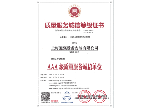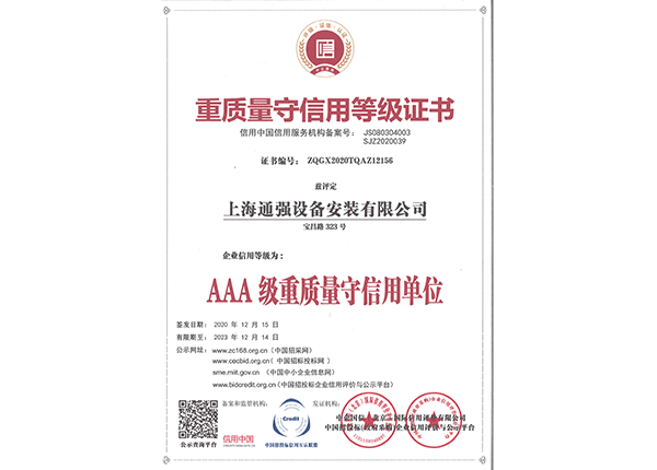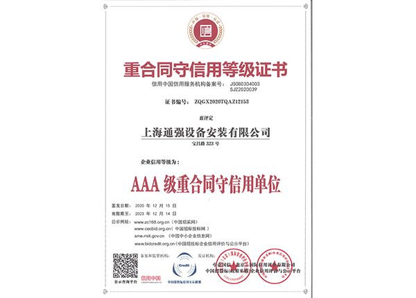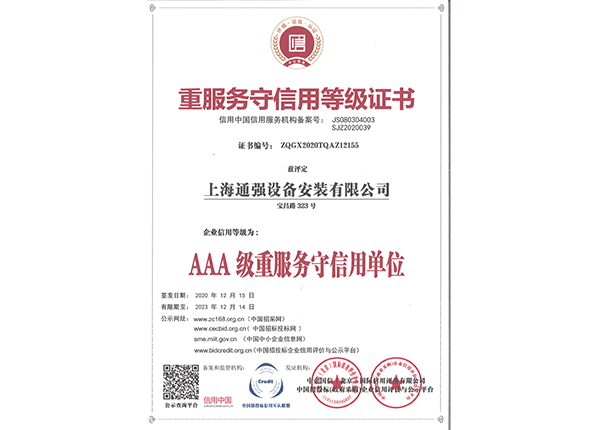 上海通強設(shè)備安裝有限公司注冊資金2000萬元,資產(chǎn)總量為100000萬元的專業(yè)設(shè)備安裝公司,公司專業(yè)從事工業(yè)與民用建筑的設(shè)備安裝、非標設(shè)備的制作、鋼結(jié)構(gòu)制作安裝、中央空調(diào)系統(tǒng)的安裝,水電及管道的安裝。經(jīng)過20多年艱苦創(chuàng)業(yè)現(xiàn)已成為一個具有國家二級安裝資質(zhì),獲得上海市“重合同,守信用”的施工單位。
